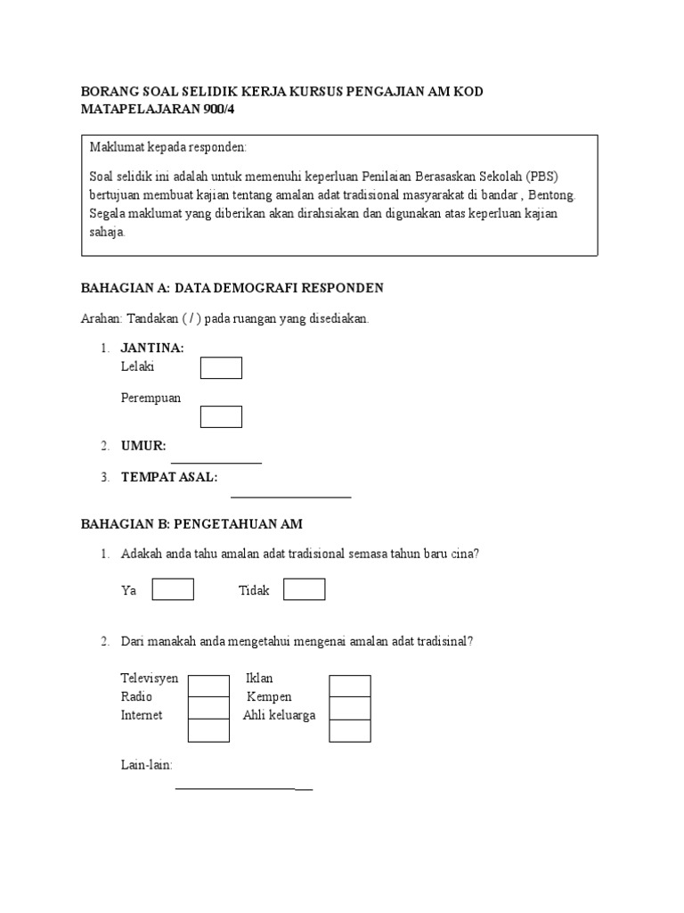 Contoh Borang Soal Selidik Pdf